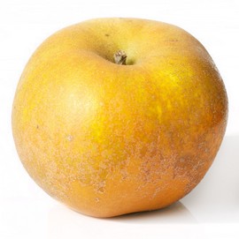 Chair blanche jaunâtre, mi-tendre, sucrée, fine, parfumée et dorée d'une acidité discrète et agréable. Conservation moins longue que Canada Blanc.