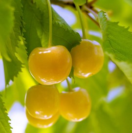C'est une variété très fertile, les fruits sont très clairs, ils présentent une jolie couleur ambrée (elle n'attire pas les oiseaux). Ils sont croquants et ont une bonne qualité gustative.