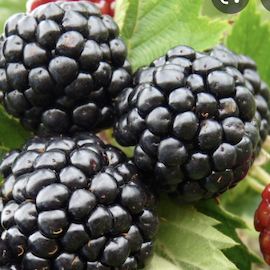 La Mûre des jardins 'Asterina' est une variété sans épines, produisant de gros fruits ronds de couleur noire, très parfumés.