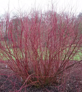 Arbuste caduc atteignant généralement 2,5 à 3 mètres de hauteur et de largeur. Jeunes rameaux d'un rouge vif et luisant, particulièrement remarquables en hiver. Floraison en mai-juin, composée de petites fleurs blanches regroupées en corymbes aplatis. Fruits : petites baies rondes, d'abord vertes puis rouges, devenant violet foncé à maturité.