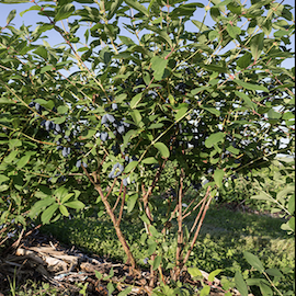 Le chèvrefeuille arbustif appelé baie de mai, Lonicera kamtschatica est cultivée pour ses fruits comestibles.